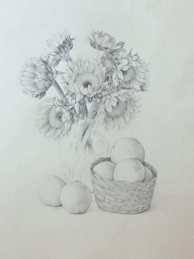 Still Life with Sunflowers – graphite on paper – 2016